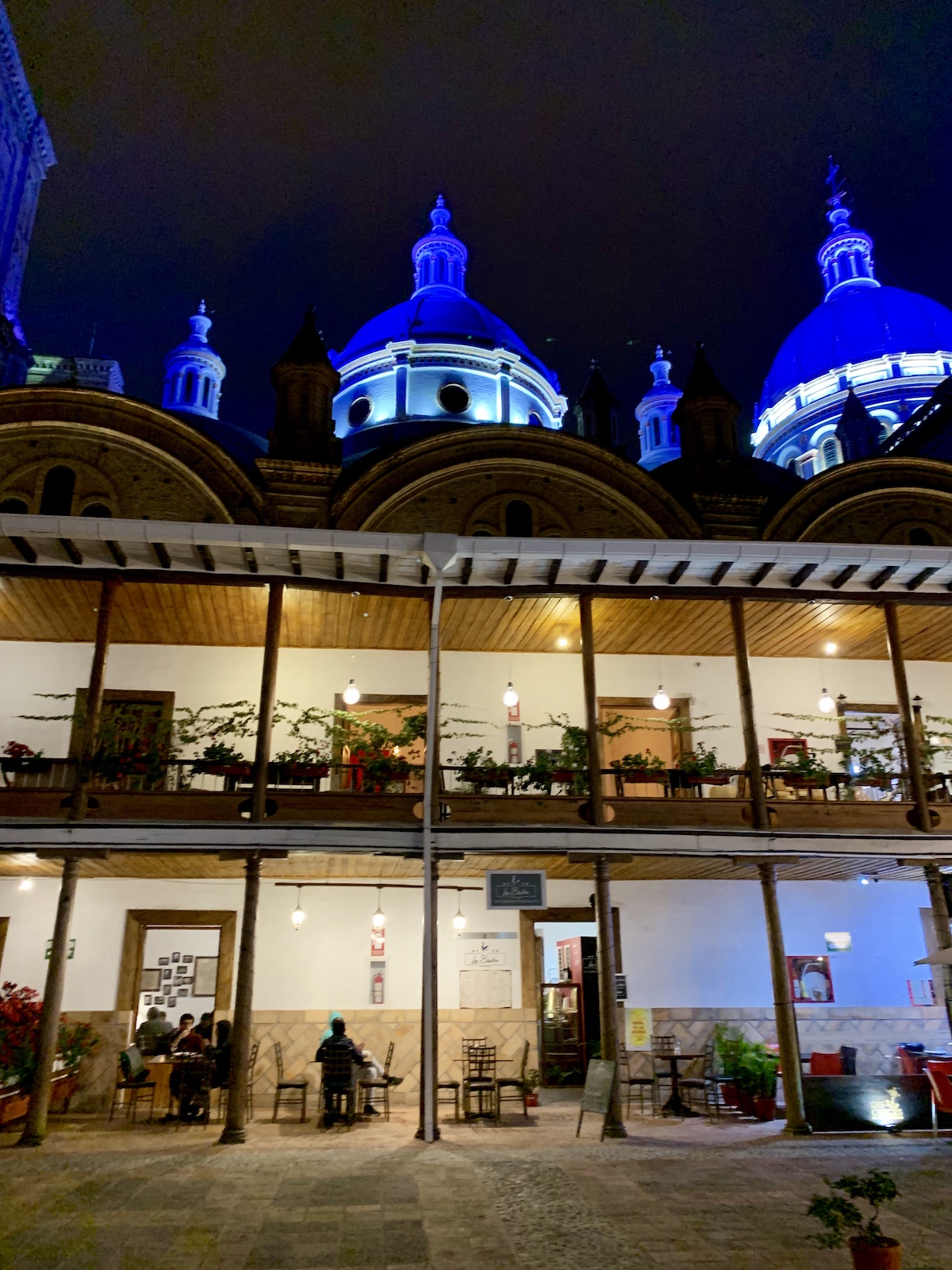 Cuenca is a city in the Andes Mountains, walk old town, sit in the plaza at night and take in the beautifully lit churches and building.