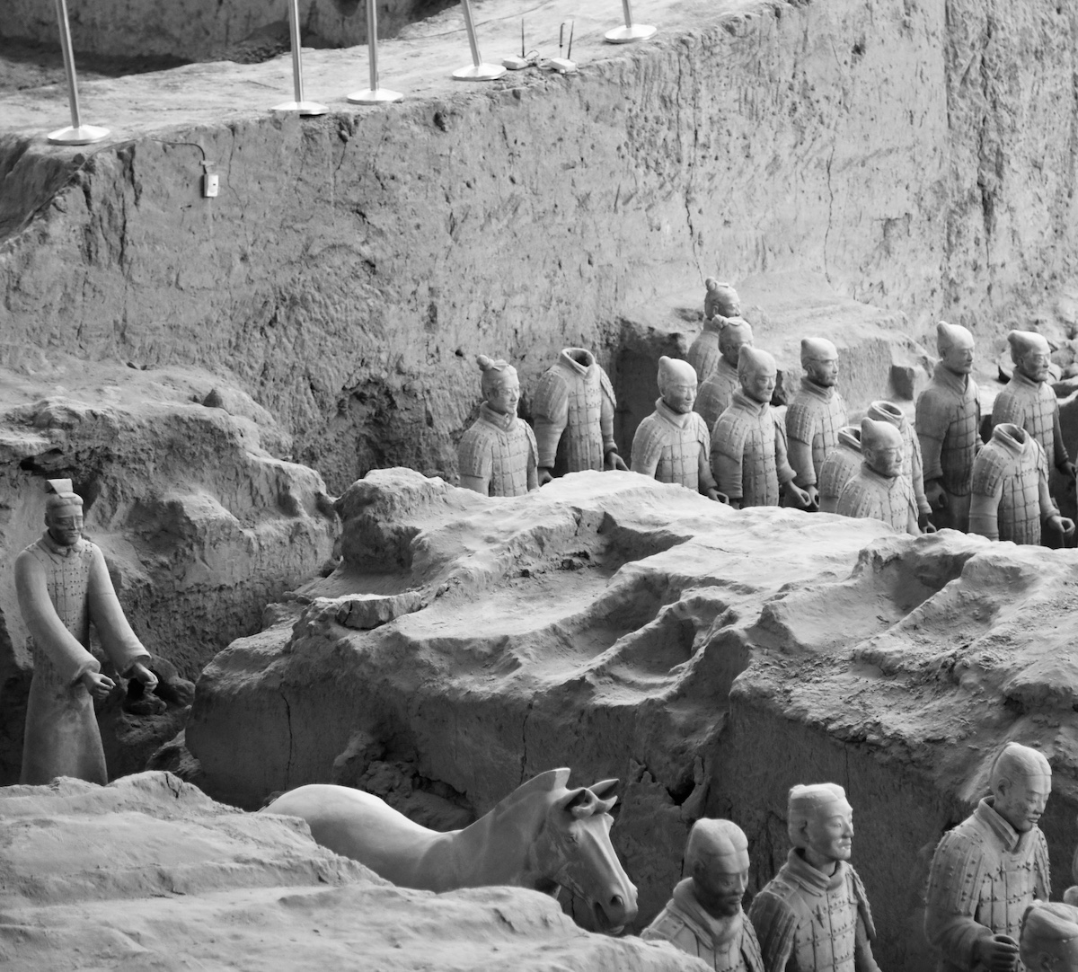 The Terracotta Army, discovered by a local farmer, is a collection of terracotta soldiers… considered funerary art buried with Emperor Qin Shi Huang, the first emperor of China in 210 BC to protect him in the afterlife. The work is still in progress and well worth a visit to see the timeless effort in restoration.
