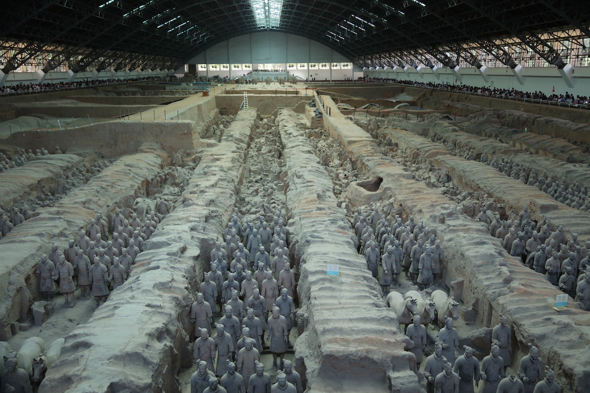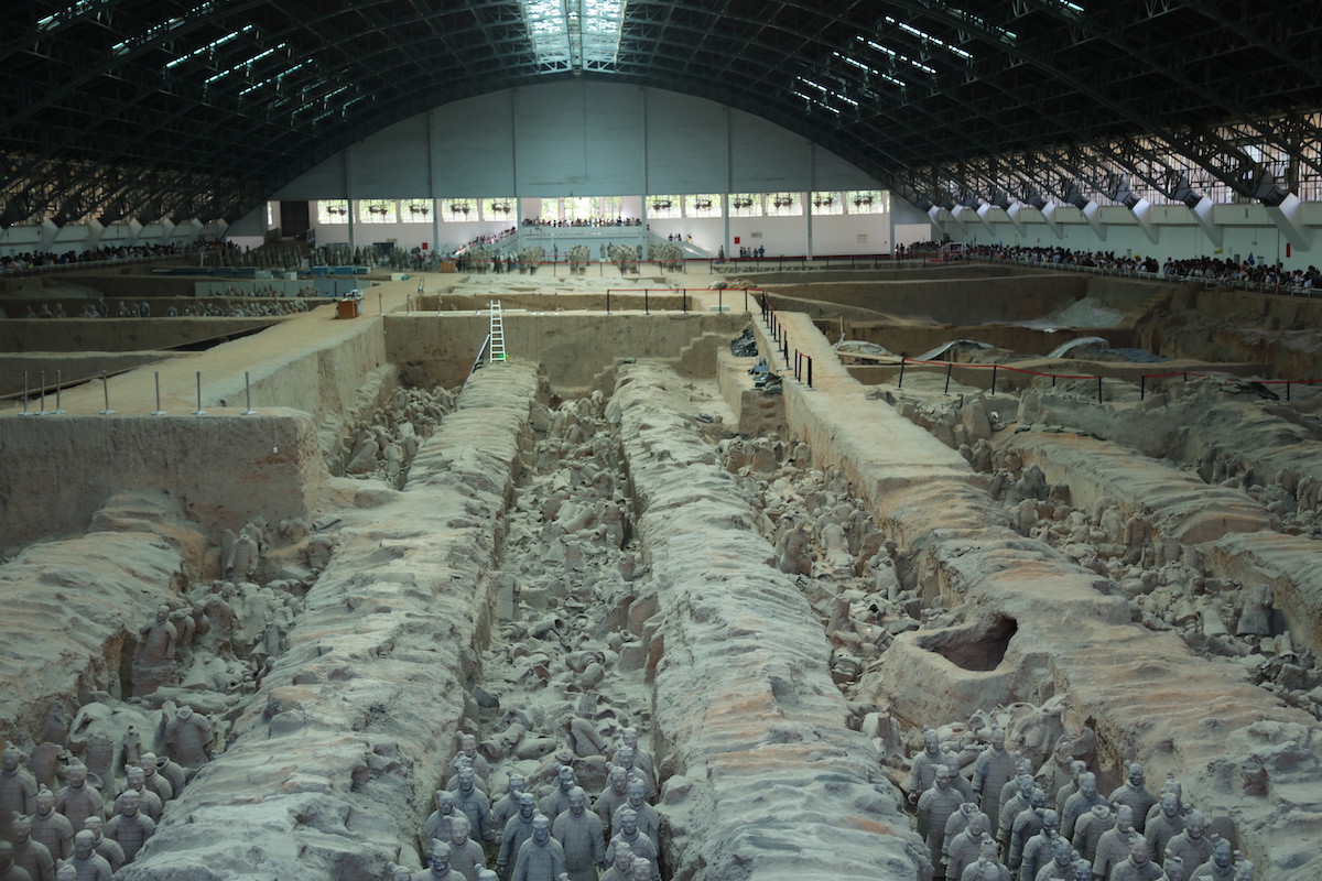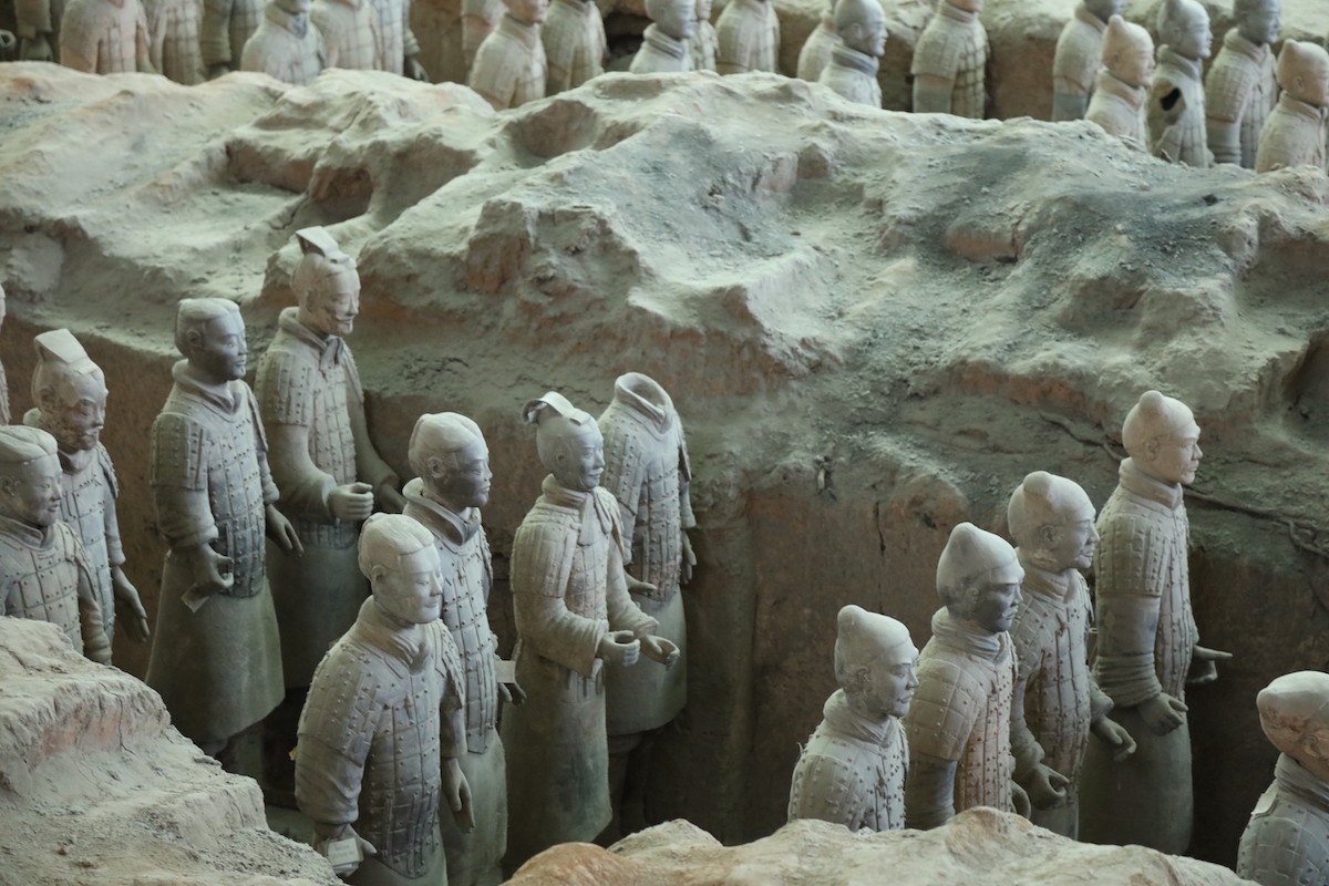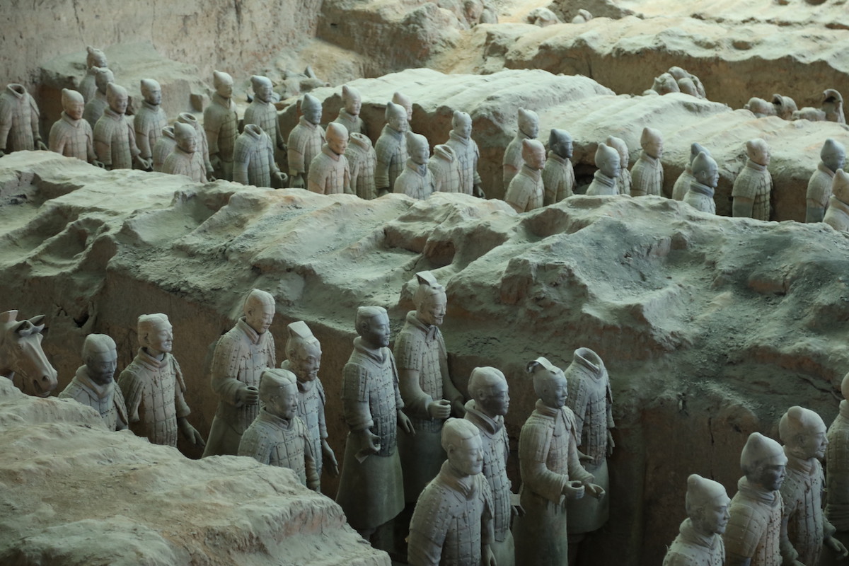 The Terracotta Army, discovered by a local farmer, is a collection of terracotta soldiers… considered funerary art buried with Emperor Qin Shi Huang, the first emperor of China in 210 BC to protect him in the afterlife. The work is still in progress and well worth a visit to see the timeless effort in restoration.